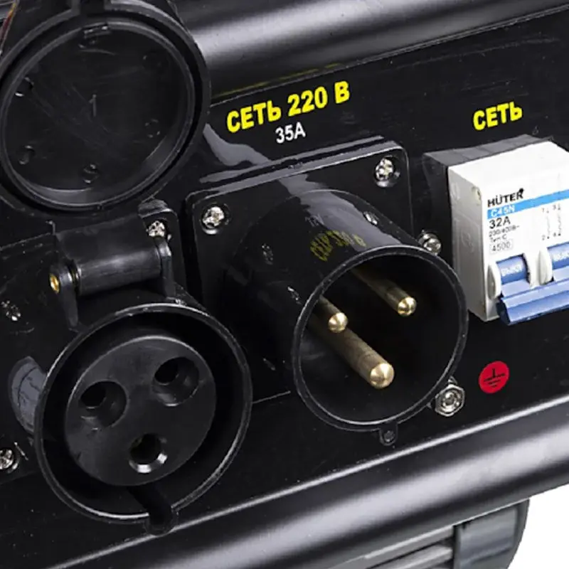 Для удобного отслеживания текущего напряжения на панели управления размещен стрелочный вольтметр. Рядом расположены розетки. Высокомощное оборудование подключается к выходу на 32 А. Все розетки оснащены защитными крышками, которые не позволяют пыли и грязи попасть внутрь.