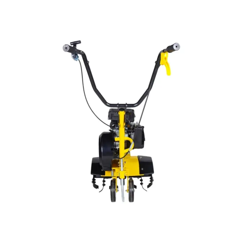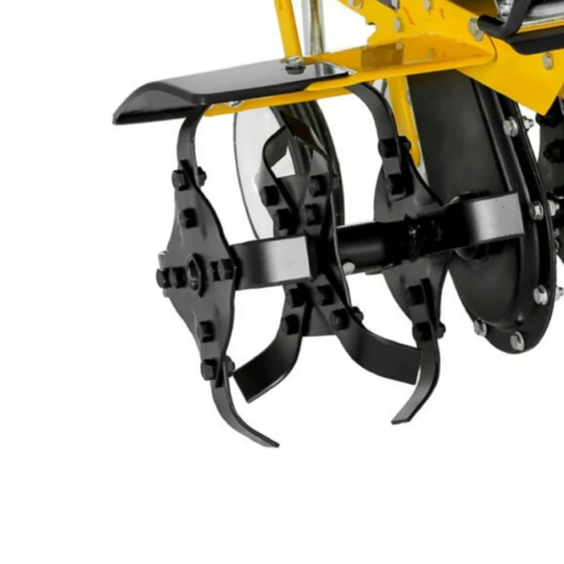 Высокая эффективность агрегата достигается благодаря мощному четырехтактному бензиновому двигателю на 4 л.с. Культиватор демонстрирует отличный уровень экономии топлива, потребляя лишь 375 гр/кВт в час. Бензобак емкостью 2 л обеспечивает достаточный запас горючего для продолжительной непрерывной работы. Оборудование оснащено единственной передачей движения — вперед. Ширина захвата одного прохода составляет около 43 см, а прочные стальные фрезы диаметром 24 см отлично подходят для качественного рыхления почвы.