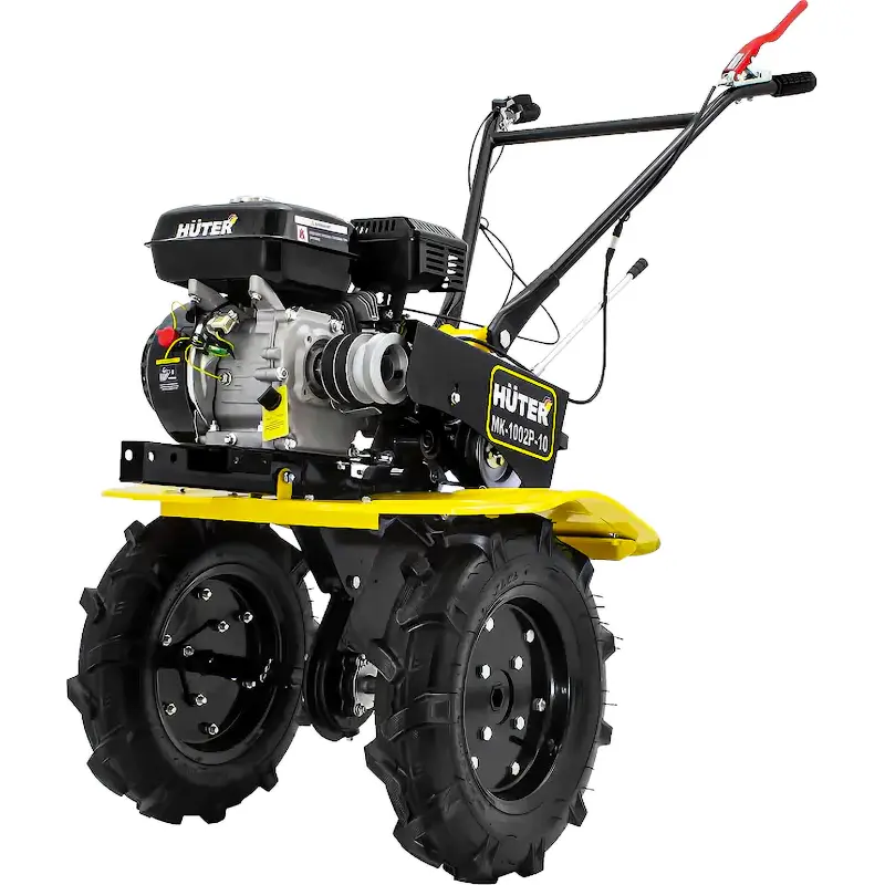 Мотоплуг HUTER МК-1002Р-10 оснащен мягкими прорезиненными рукоятками, которые обеспечивают удобное использование машины. Для быстрого доступа на держателях размещены рычаг регулировки оборотов двигателя и газа, а также кнопка зажигания. Благодаря сбалансированной конструкции мотоблока его легко перемещать и контролировать.