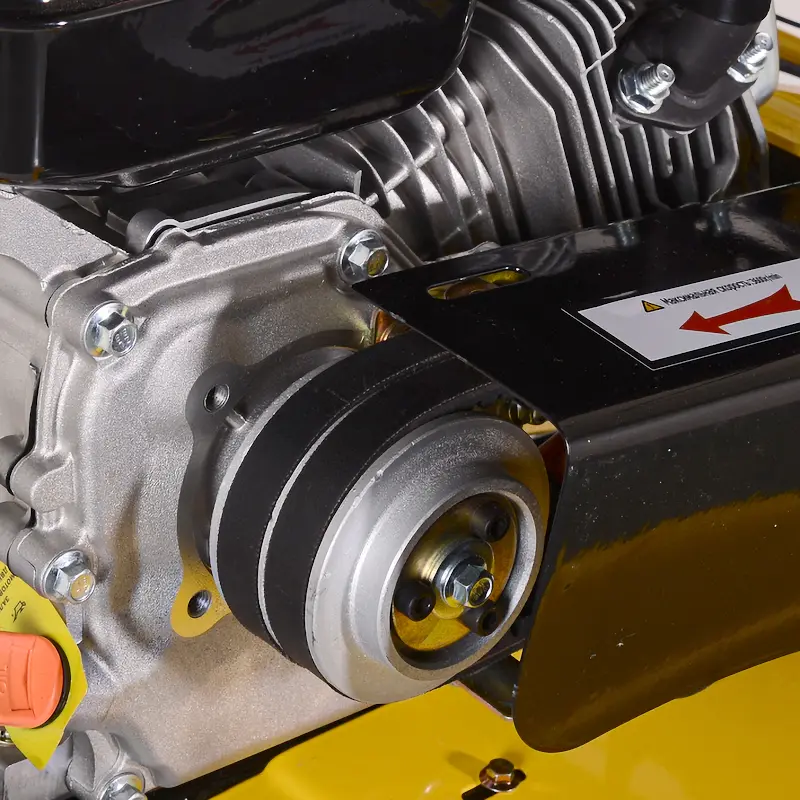 Бензиновый мотоблок комплектуется стальными фрезами с широким захватом и большой глубиной обработки, которые обеспечивают высокую производительность вспашки. Сошник, углубляясь в землю на установленный уровень, обеспечивает равномерную обработку почвы и устойчивость машины.