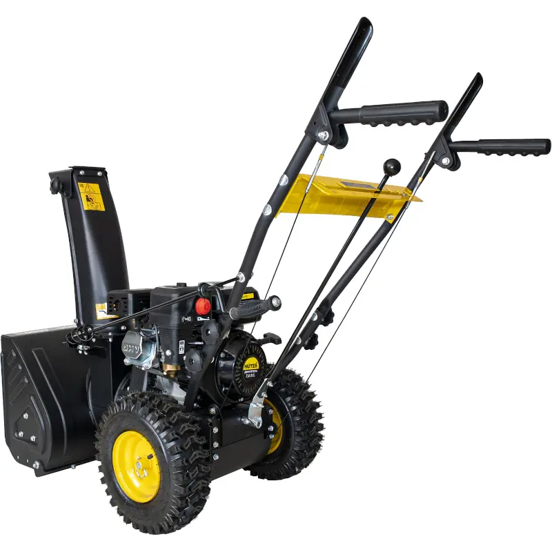 - Благодаря 4-тактному бензиновому двигателю мощностью 6,5 л.с. машина без труда убирает даже плотный и замерзший снег.