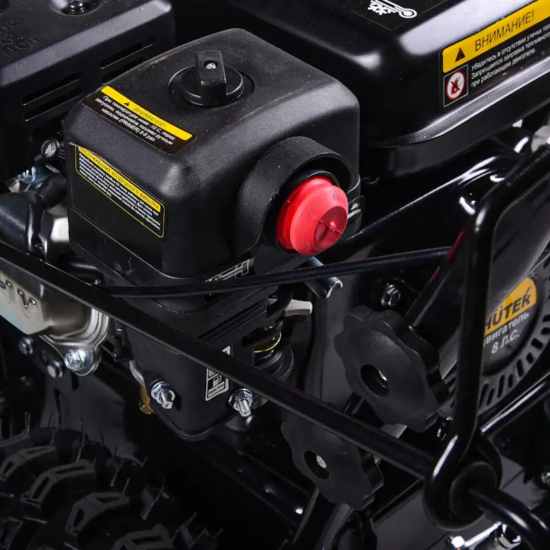 Колеса тракторного типа имеют глубокий рисунок на шинах. Это обеспечивает хорошее сцепление снегоуборочной машины Huter SGC 8,0 с поверхностью, что делает агрегат устойчивым даже при гололеде.