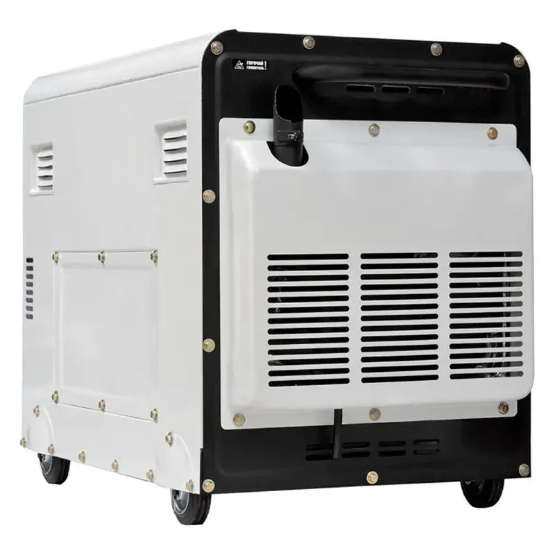 - Шумозащитный корпус предохраняет детали электростанции от внешних факторов, а также снижает уровень звукового давления до 72 дБ.