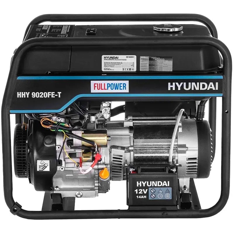 Бензиновая электростанция Hyundai HHY 9020FE-T оснащена стальной рамой диаметром 28 мм, которая прочно фиксирует все детали. Демпфирующее вставки снижают уровень вибрации и шума. Во время работы сила звукового давления не превышает 74 дБ на расстоянии 7 м от генератора.