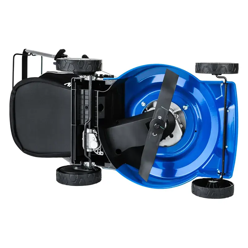 Комбинированный травосборник с жесткой пластиковой крышкой и мягким тканевым дном снабжен ручкой для переноски. Такая конструкция не утяжеляет газонокосилку, упрощает очистку, позволяет сложить контейнер для транспортировки и хранения. Двухлопастный нож обеспечивает аккуратный, ровный срез травы. При установке мульчирующей заглушки скошенная растительность измельчается и остается на газоне в качестве природного удобрения.