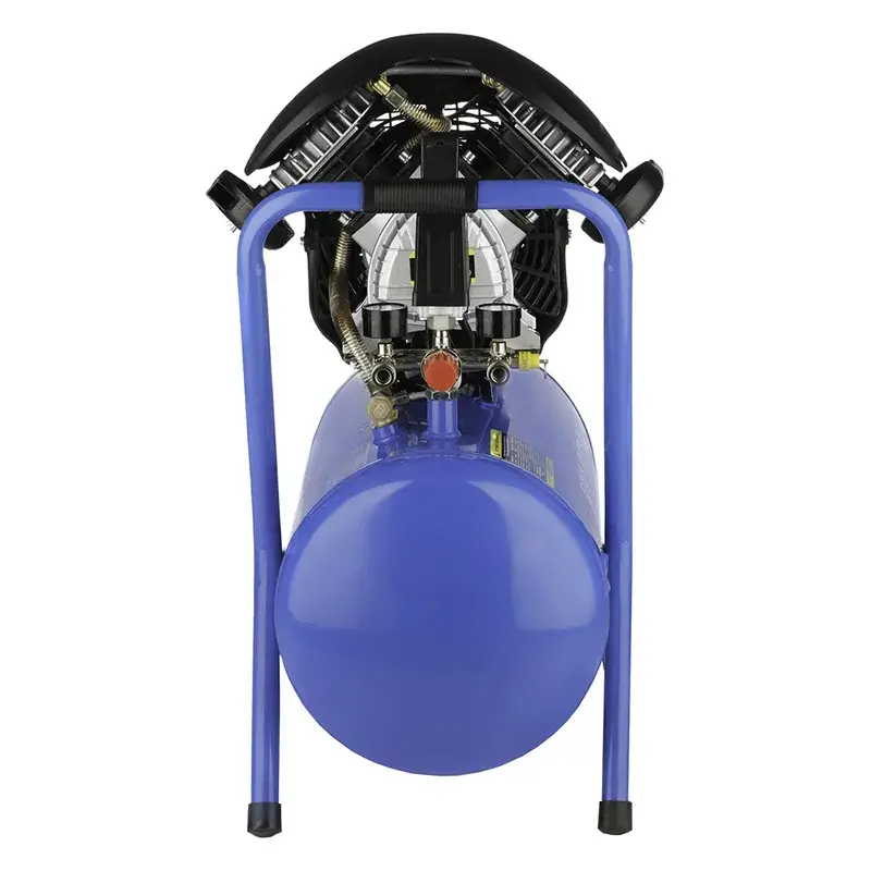 Масляный компрессор с прямым приводом оснащен двигателем мощностью 2200 Вт, который работает от однофазной электросети 230 В и обеспечивает 2850 об/мин. Головка двухцилиндровой поршневой модели имеет V-образную форму. Для облегчения запуска двигателя предусмотрен стравливающий клапан, который остается открытым несколько секунд после включения прибора. Термозащита отключает мотор в случае перегрева.