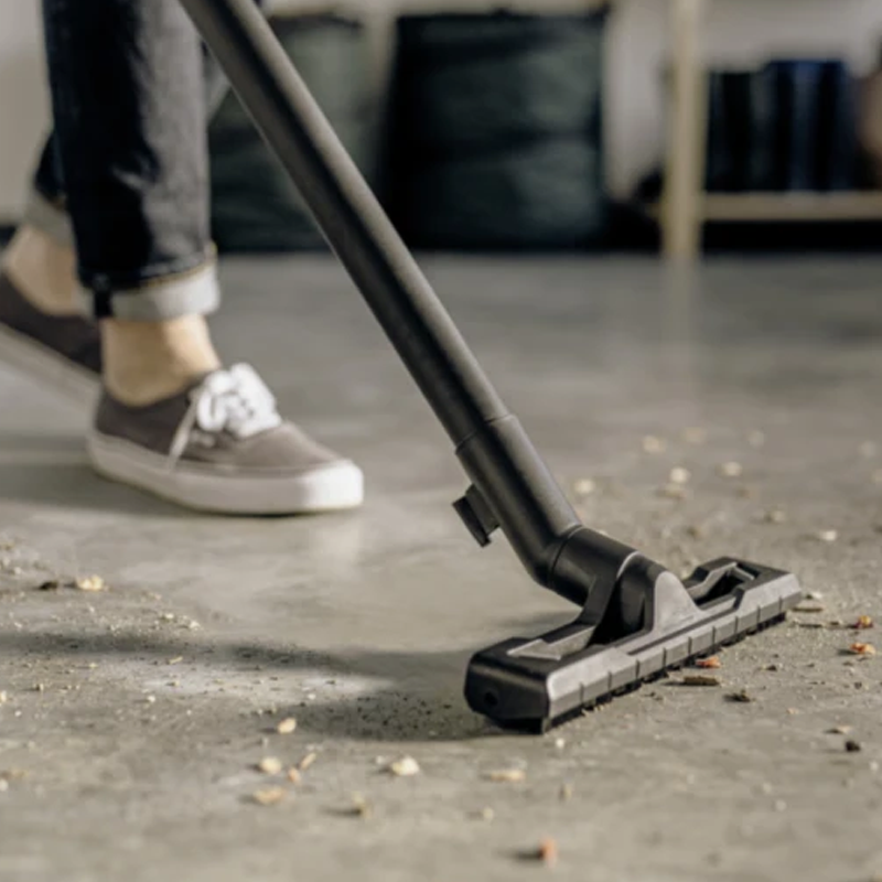 Аппарат оснащен 20-литровым ударопрочным пластмассовым мусоросборником, 5-метровым кабелем, всасывающим шлангом длиной 2,2 м, насадкой для пола со вставками, плоским складчатым фильтром и фильтр-мешком из нетканого материала. Встроенная штепсельная розетка с автоматикой включения / отключения облегчает работу с электроинструментами. Запатентованная конструкция фильтровального узла позволяет легко и быстро вынимать фильтр, не вступая в контакт с грязью, а функция выдувания – удалять загрязнения из мест, не позволяющих собирать их пылесосом. Благодаря съемной рукоятке насадки могут присоединяться непосредственно к всасывающему шлангу, компактно закрепляемому на корпусе аппарата для хранения.