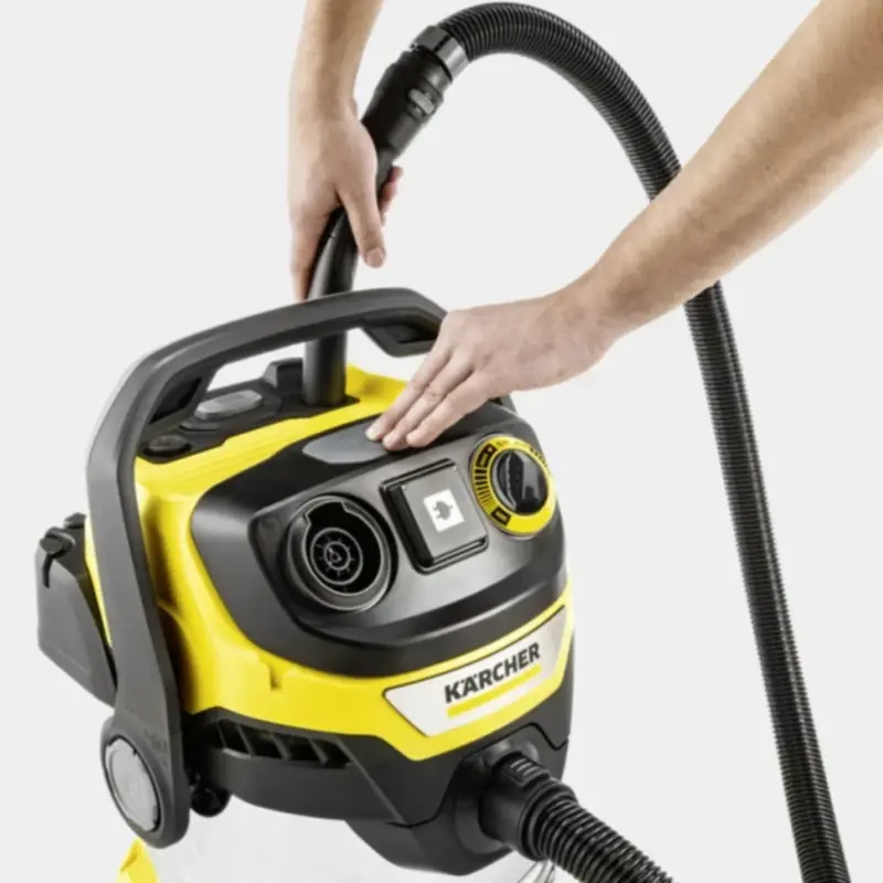 Этот хозяйственный пылесос, обладающий колоссальной силой всасывания при низком энергопотреблении (всего 1300 Вт), поставляется с насадкой-пылеулолвителем, позволяющей высверливать отверстия без распространения пыли. Аппарат WD 6 P S V-30/6/22/T + DDC имеет 6-метровый кабель, всасывающий шланг длиной 2,2 м и 30-литровый мусоросборник из нержавеющей стали с запираемым пробкой отверстием для удобного слива жидкостей.