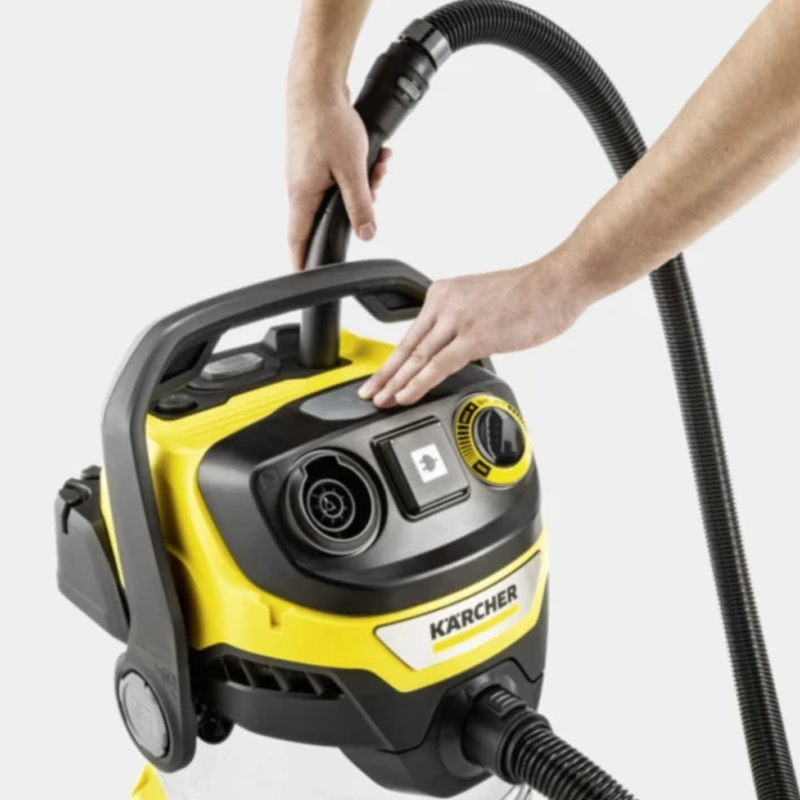 Энергоэффективный и обладающий высочайшей силой всасывания хозяйственный пылесос WD 6 P S V-30/8/35/T потребляет лишь 1300 Вт и обеспечивает при этом превосходные результаты сбора любого мусора – сухого или влажного, крупного или мелкого. Он оснащен прочным 30-литровым мусоросборником из нержавеющей стали с отверстием для слива жидкостей, закрываемым резьбовой пробкой, 8-метровым кабелем, снабженным рукояткой всасывающим шлангом длиной 3,5 м, удлинительными трубками из нержавеющей стали, переключаемой насадкой для пола, плоским складчатым фильтром и фильтр-мешком из нетканого материала.