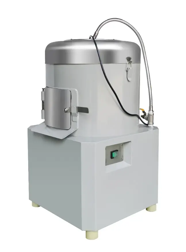 Очистка за счет принудительного контакта картофеля с абразивной поверхностью стенок картофелечистки и вращающегося диска, расположенного в основании емкости.