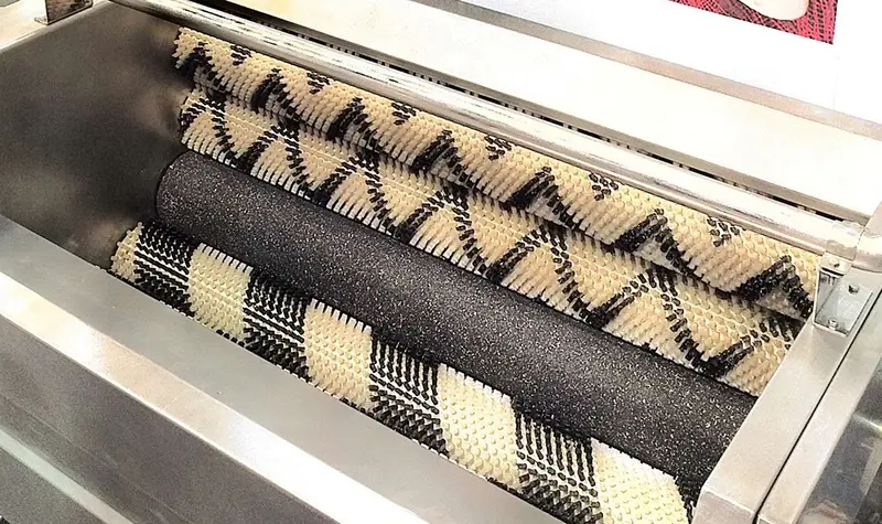 • Очистка кожуры осуществляется путем контакта поверхности корнеплодов с вращающимися горизонтальными валками