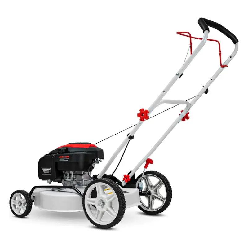 Конструкция дает возможность мульчирования (для удобрения территории) и выброса травы вбок.