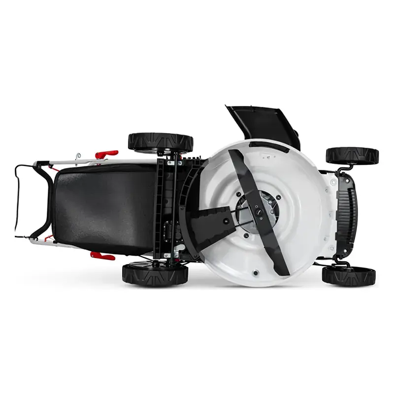 Бензиновая газонокосилка поддерживает несколько режимов работы. Скошенная трава либо собирается в травосборник, либо выбрасывается обратно на газон через боковой или задний разгрузочный лоток, либо мульчируется для удобрения почвы. Семиуровневая регулировка высоты кошения выполняется при помощи рычага около заднего колеса. Косилка движется самостоятельно с постоянной скоростью. Достаточно лишь задать направление. В труднопроходимых местах привод можно отключить, отпустив соответствующий прижимной рычаг. На рукоятке предусмотрен специальный держатель для шнура стартера, избавляющий от необходимости наклоняться вперед при запуске двигателя.