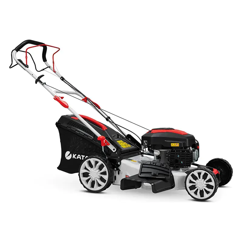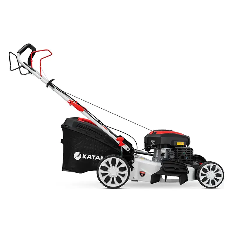 Бензиновая газонокосилка Katana KL-56AS PRO — это самоходная модель с одной передней передачей и простым управлением. Благодаря большой ширине кошения 56 см вы быстро и легко справитесь с покосом травы на обширных участках. Высоту кошения можно регулировать в диапазоне от 25 до 75 мм одним рычагом, который устанавливается на выбор в семь положений. Тканевая нижняя часть комбинированного травосборника складывается для компактного хранения. Контейнер вместимостью 60 литров позволяет подолгу косить, не останавливаясь для его снятия и опорожнения. Поддерживаются режимы мульчирования, выброса назад и в сторону.