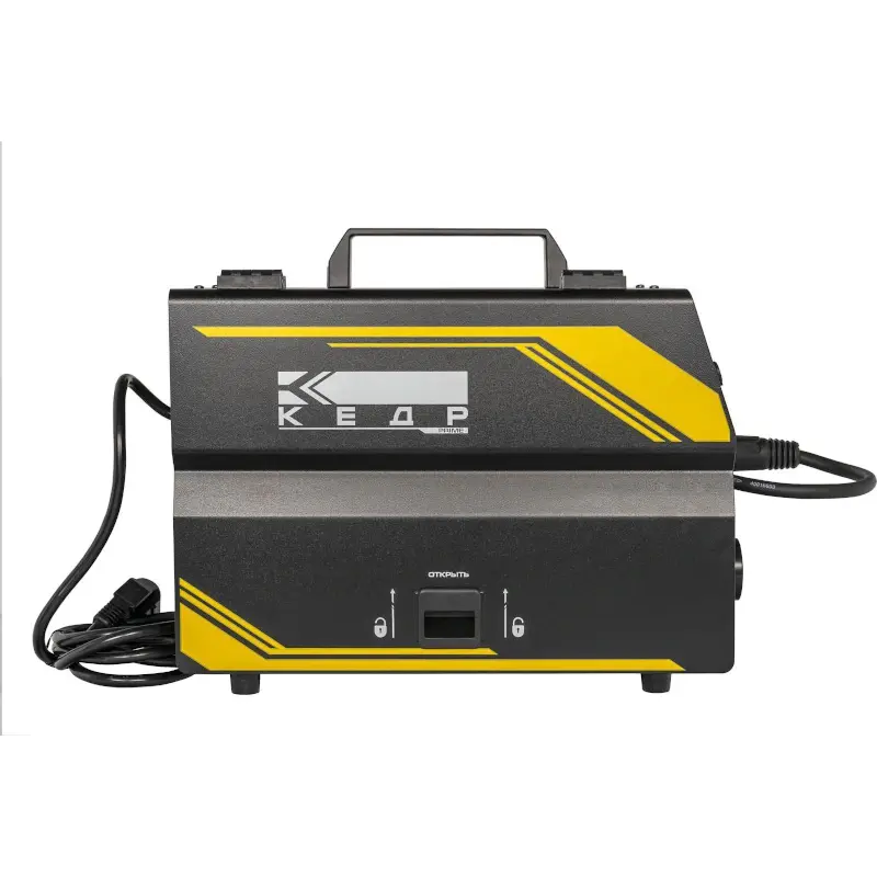 Два цифровых дисплея на передней панели обеспечивают удобство управления и контролирования рабочих параметров. Сварочный инвертор TIG КЕДР поддерживает три режима сварки: MIG/MAG, TIG с функцией Lift, ММА, и три режима работы горелки: 2Т, 4Т и «прихватка», которые можно выбирать с помощью переключателей. Индикаторы сети и перегрева сигнализируют о состоянии устройства. Поворотные регуляторы служат для настройки сварочного тока и напряжения, скорости подачи проволоки, таймера точечной сварки, форсажа дуги для ручной сварки.