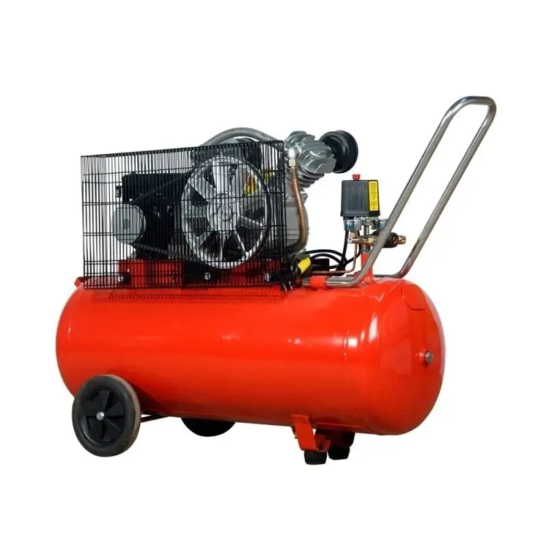 Масляный компрессор оснащен двухцилиндровым v-образным электродвигателем, который обеспечивает высокую производительность 336 л/мин. Ременная передача делает более плавным старт и мягкой работу компрессора за счет демпфирующего действия ремня, снижает уровень шума. Ресивер объемом 100 л выполнен из стали толщиной 2,5 мм, имеет пробку слива конденсата и два ревизионных отверстия для проверки качества сварных швов и отслеживания коррозии.