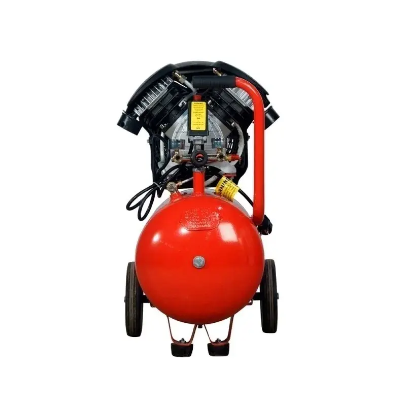 Кожух снижает уровень шума, предохраняет электромотор от механических повреждений, предотвращает ожоги при случайном прикосновении к работающему компрессору. Воздушный фильтр очищает всасываемый воздух для защиты поршневой группы от пыли и посторонних частиц. Колеса и рукоятка облегчают перемещение компрессора по рабочей площадке. Виброгасящие подставки обеспечивают устойчивость прибора во время работы.