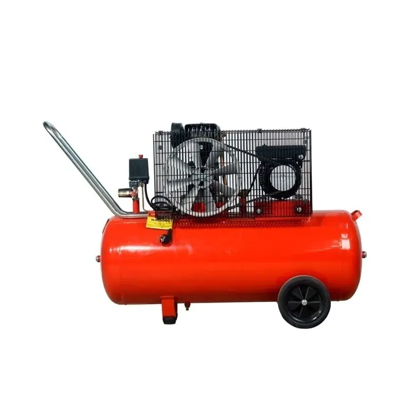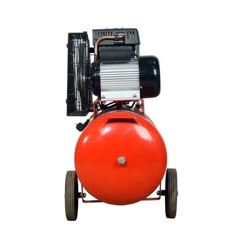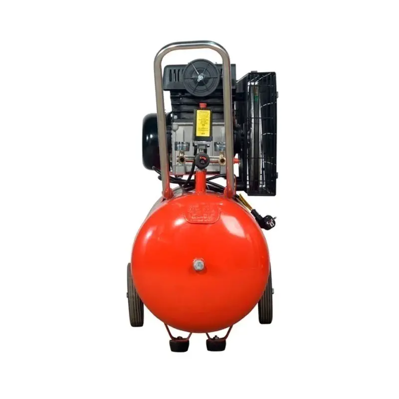Два цилиндра масляного компрессора расположены в ряд, поэтому изнашиваются равномерно со всех сторон и дольше служат. Ременный привод обеспечивает плавный старт и мягкую работу двигателя, снижает уровень шума, повышает моторесурс. Ресивер объемом 100 л изготовлен из стали толщиной 2,5 мм. Через ревизионные отверстия удобно проверять качество сварных швов и отслеживать коррозионные процессы. Для слива конденсата предусмотрен клапан.