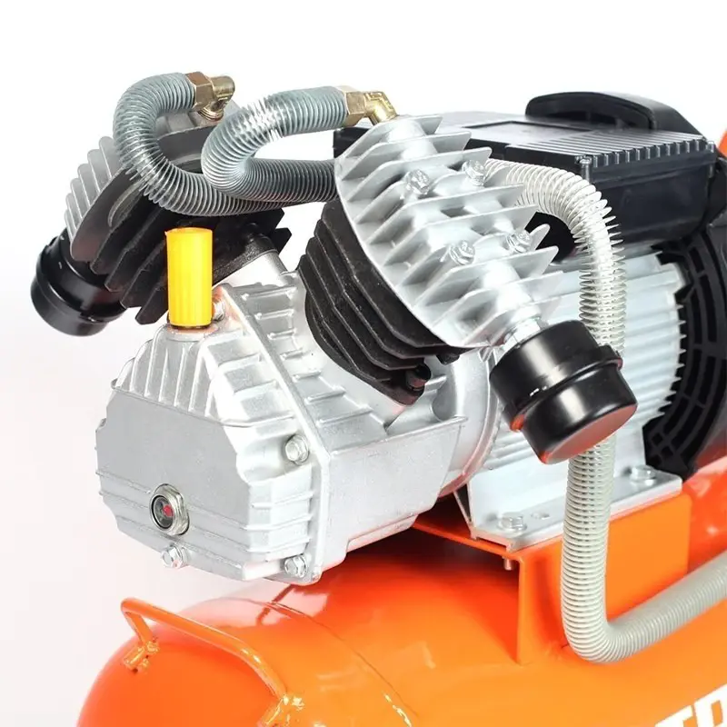 Масляный компрессор работает от бытовой электросети. Прямая передача имеет простую и надежную конструкцию, не требует расходных материалов для техобслуживания, повышает долговечность и эффективность прибора. Модель с V-образной двухцилиндровой поршневой группой оснащена двигателем мощностью 2,2 кВт, который поддерживает 2850 об/мин. Ресивер объемом 50 л имеет защитное противокоррозионное покрытие и клапан для слива конденсата.