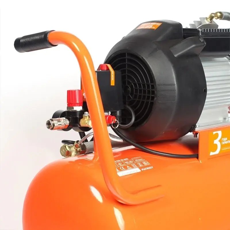 Прессостат автоматически отключает двигатель при давлении в ресивере 8 бар. При расходовании воздуха пневмоинструментом давление снижается и прессостат включает двигатель. Компрессор работает в повторно-кратковременном режиме с продолжительностью включения до 50 %. Рекомендуется производить не более 10 запусков компрессора PATRIOT VX 50-402 в час.