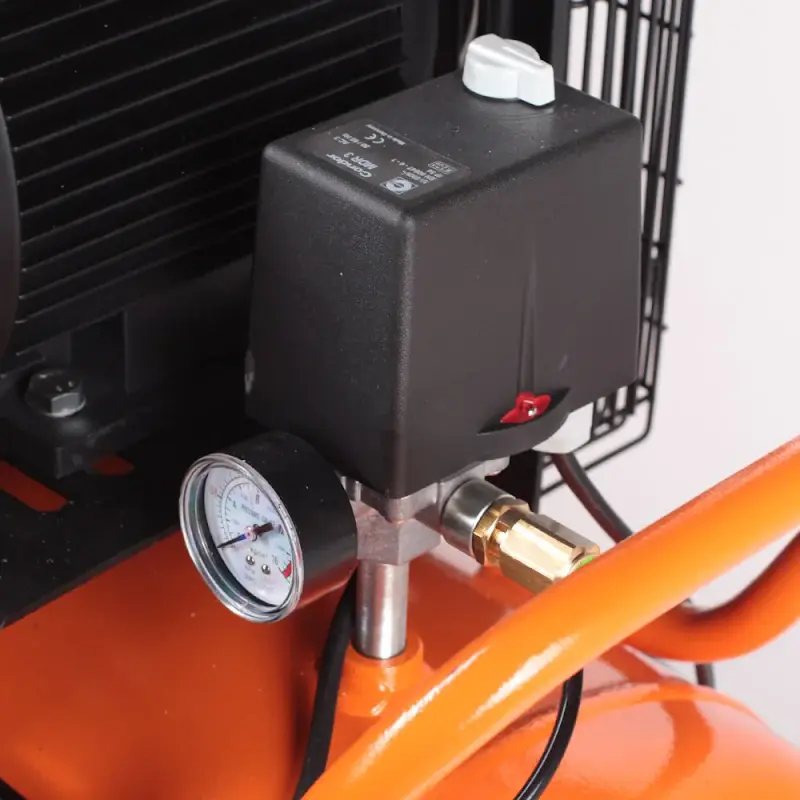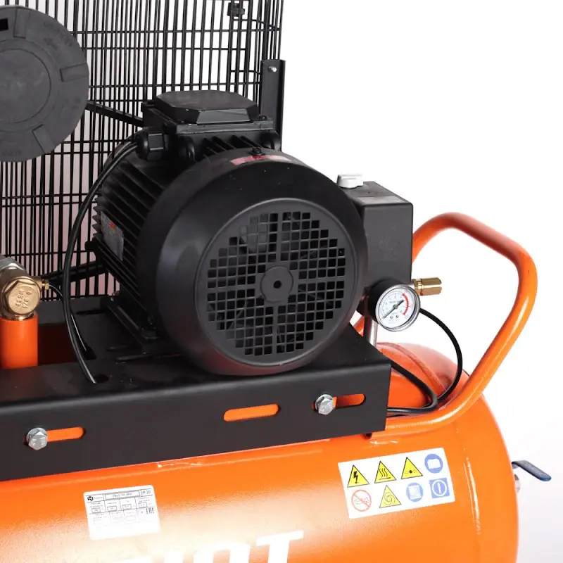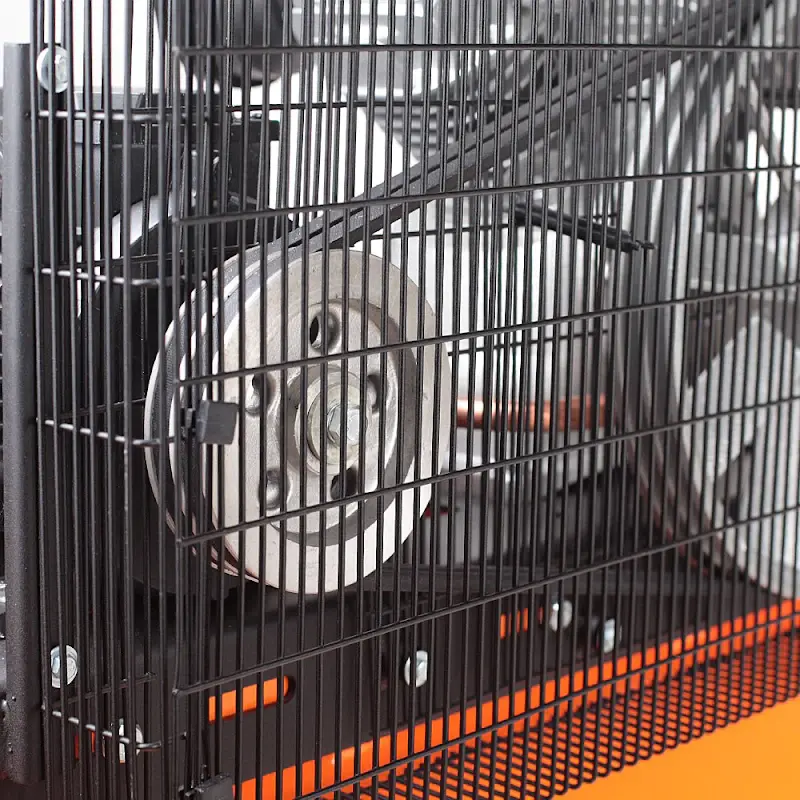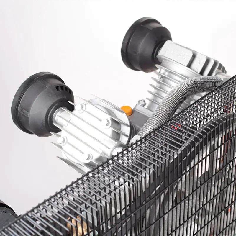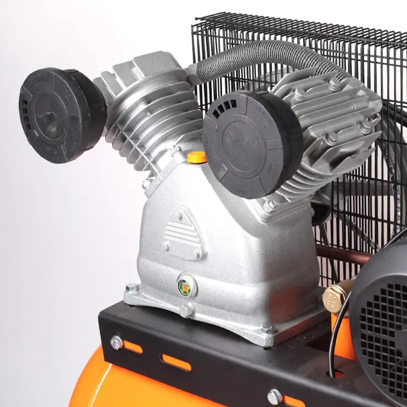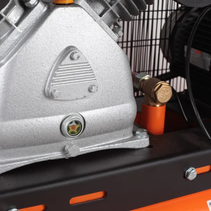 Двухцилиндровая компрессорная головка оснащена ребрами охлаждения увеличенной площади, что гарантирует отличный отвод тепла и, тем самым, меньший износ рабочих узлов. Слив конденсата удобно осуществляется через специальный клапан внизу ресивера. Расход масла - 0.03 г/м3.