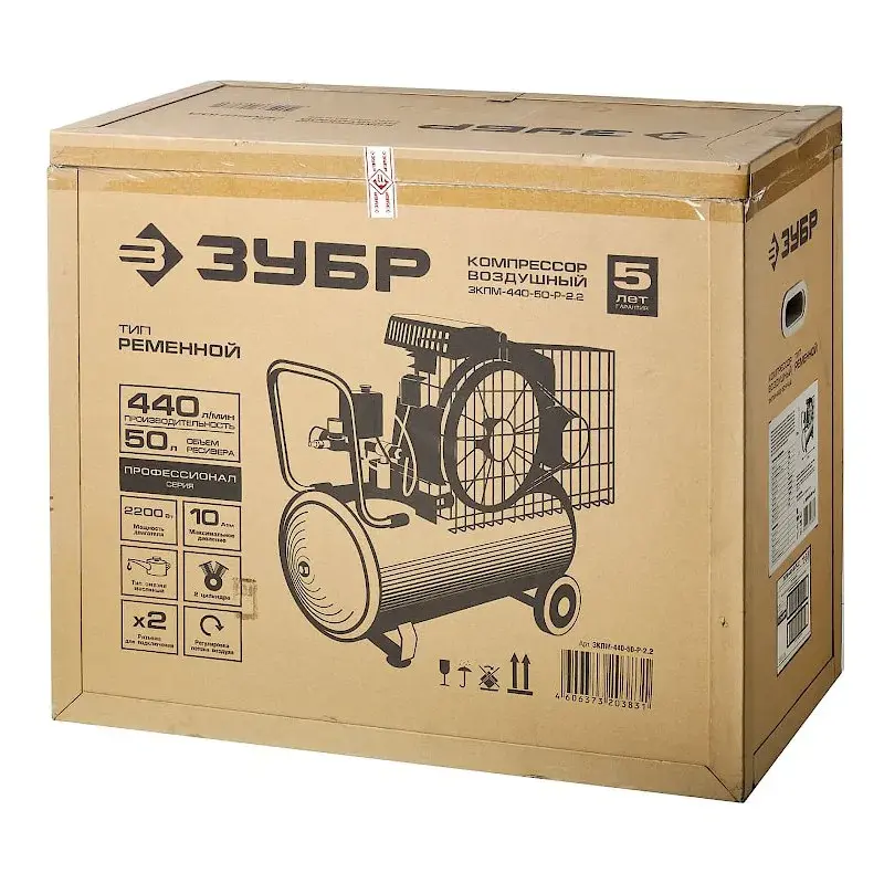 Масляный компрессор ЗУБР ЗКПМ-440-50-Р-2.2 с максимальной производительностью 440 л/мин и ресивером объемом на 50 л подходит для продолжительного использования. К аппарату можно подключить до 2 пневматических инструментов с отдельной регулировкой расхода воздуха.