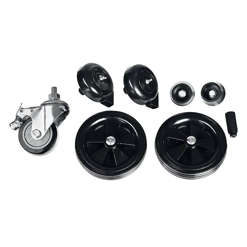 Компрессорная установка перемещается с помощью обрезиненной ручки и колес.