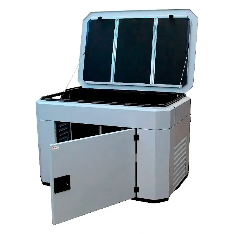 Если вы хотите использовать генератор круглый год, предлагаем рассмотреть кожух для электростанции в комплектации WINTER с обогревом, который обеспечит генератору гарантированный быстрый старт и бесперебойную работу зимой.
