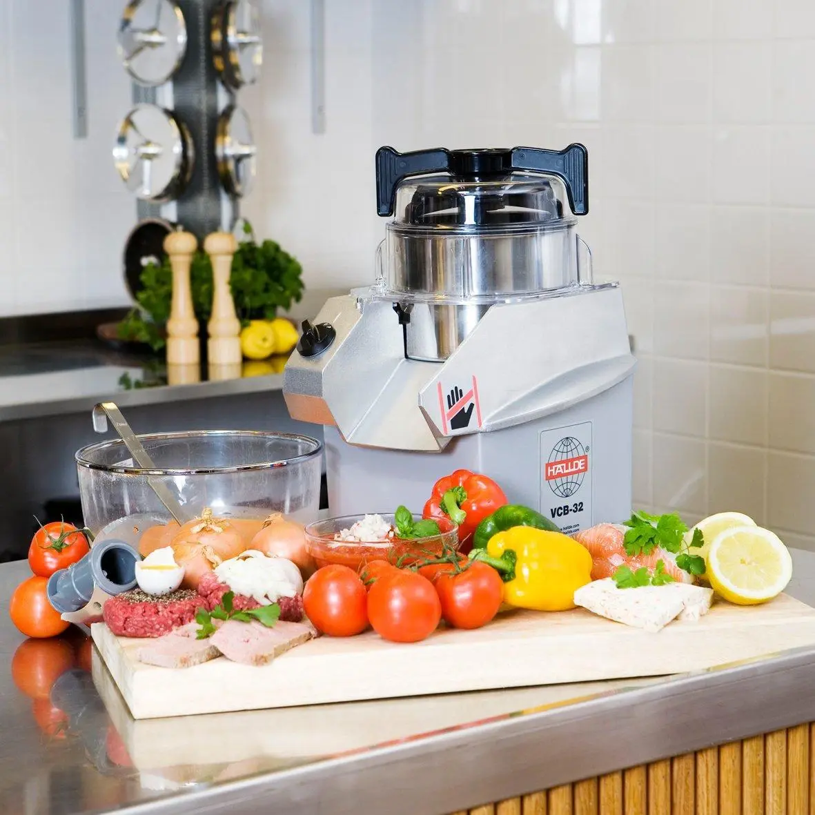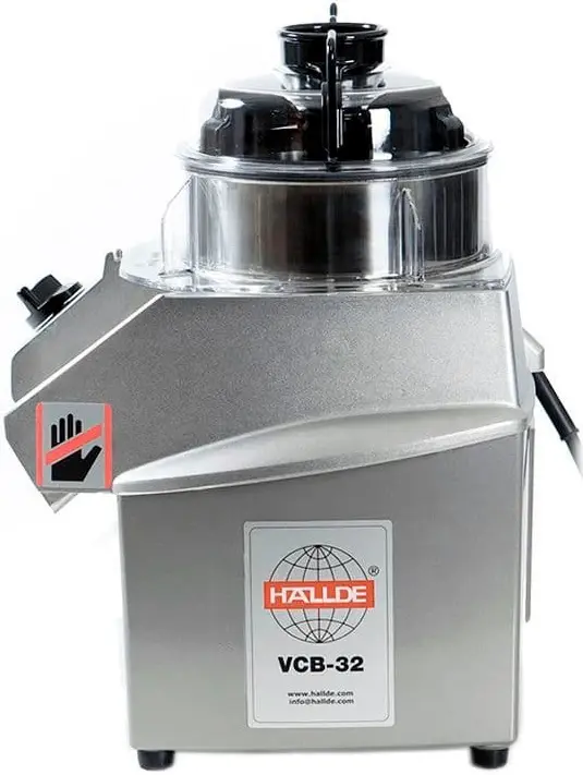 Куттер Hallde VCB-32 предназначен для переработки влагосодержащих, сухих и жидких пищевых продуктов: измельчение, мелкая нарезка и перемешивание практического любого типа продукта - от овощей до орехов, приготовление ароматизированных масел, майонеза, десертов, фарша, пюре, паштетов, панировочных сухарей и т.п. Модель VCB-32 подходит для кухонь детских садов, домохозяйств, армейских столовых, морских судов, ресторанов, отелей, предприятий общественного питания, пекарен, кафе/баров, супермаркетов и т.д.