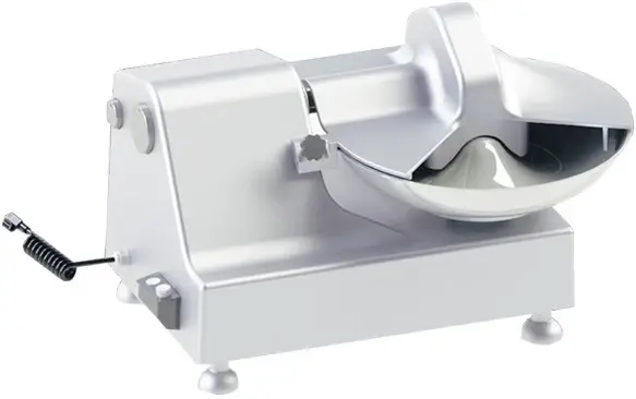 Продукт загружается в чашу из нержавеющей стали, вращающуюся в горизонтальной плоскости перпендикулярно плоскости вращения 3-х лопастного серповидного ножа из нержавеющей стали (Италия).