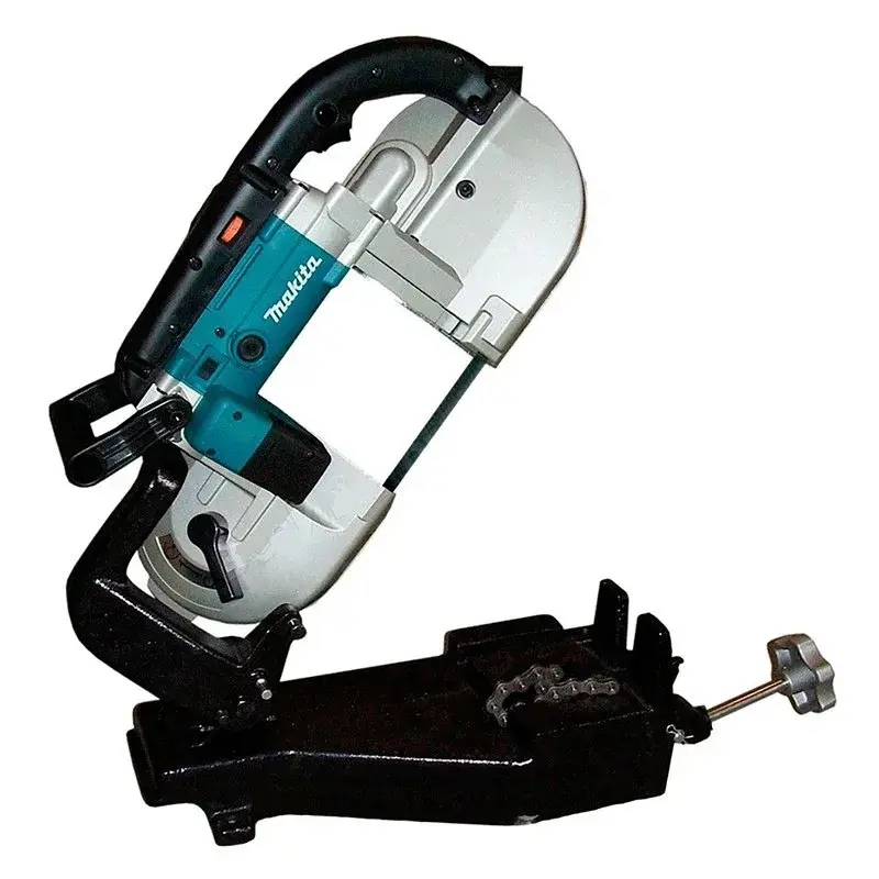 Ленточная пила Makita 2107FK с настраиваемой скоростью реза позволяет работать с трубами диаметром до 120 мм. Инструмент обрабатывает материал без образования искр и подходит для установки на станину.