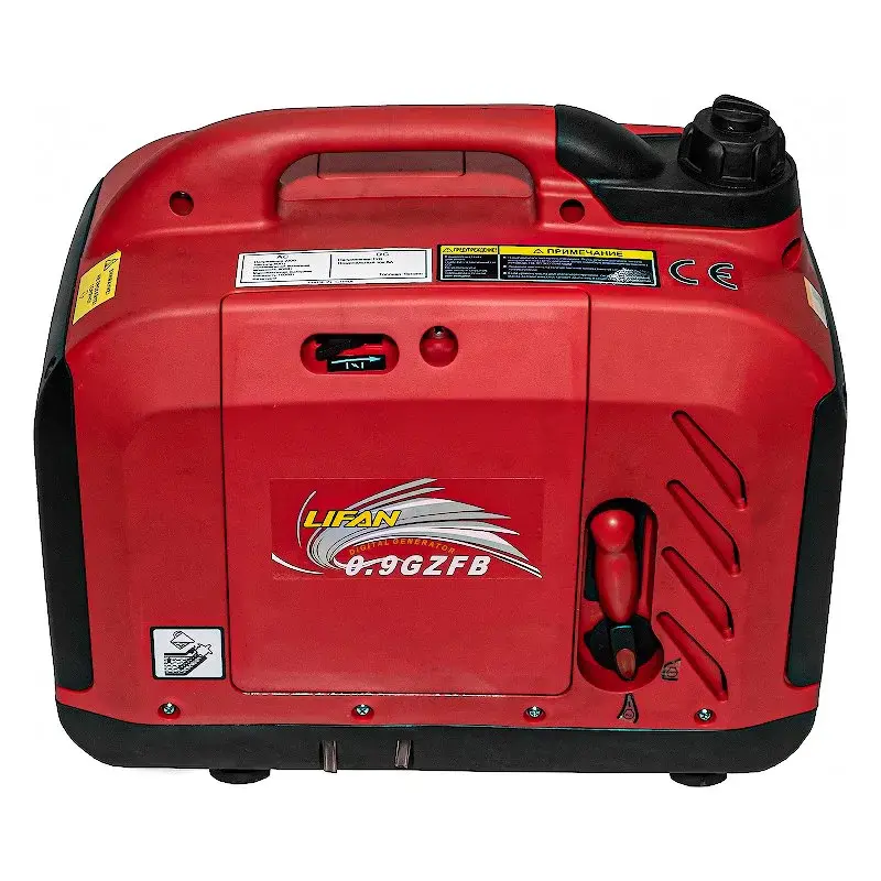 Бензиновый генератор Lifan 0.9GZFB – самая компактная модель в линейке для питания оборудования мощностью 0,9 кВт. Одной полной заправки бака хватает на непрерывную работу в течение 6 часов.