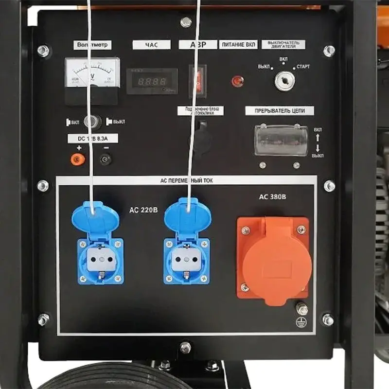 Генератор обладает высокой мощностью в 12/10.5кВт, временем непрерывной работы около 4 часов, имеет выходное напряжение 220В и 380В. Оснащен электрическим стартером, вольтметром, индикатором уровня топлива, системой контроля уровня масла и автоматического отключения в случае снижения его уровня, а также системой защиты от перегрузок (AVR).