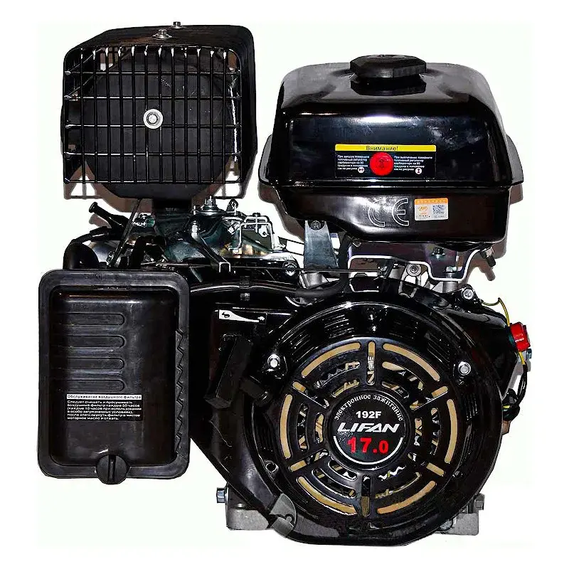 Бензиновый двигатель Lifan 192F 17 л.с. устанавливается на сельскохозяйственную технику. Запуск данной модели осуществляется с помощью ручного стартера. Топливный бак установлен на стойки и поднят (если сравнивать с аналогичной моделью 190).