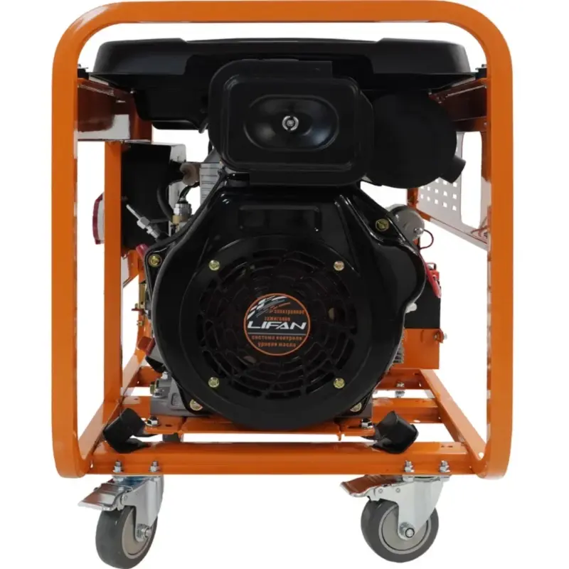 Специальные демпфирующие подушки, предусмотренные конструкцией LIFAN DG9000E3A, позволяют устройству создавать меньше шума и вибрации. Удобная металлическая рама с рукоятками и колесами 4*5" облегчает перенос и транспортировку генератора и обеспечивает его устойчивое положение на поверхности. На розетках имеются специальные крышки, защищающие от попадания твердых загрязнений и влаги.