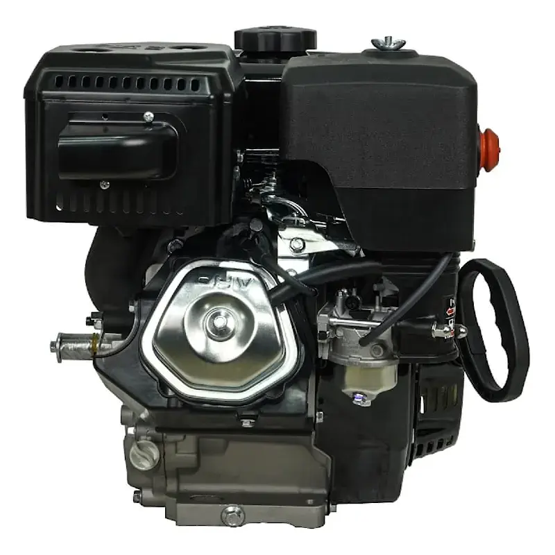 Данный двигатель имеет горизонтальный вал, воздушное охлаждение, ручной и электрический старт. На двигателе установлен глушитель и классический воздушный фильтр. На корпусе воздушного фильтра стоит праймер подкачки топлива для легкого запуска двигателя.