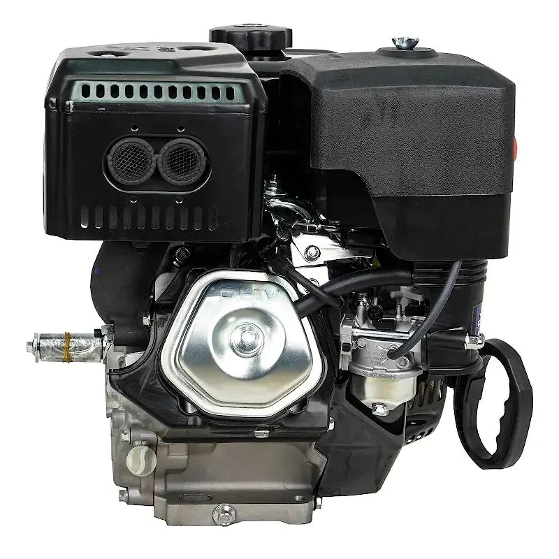 Данный двигатель имеет горизонтальный вал, воздушное охлаждение и ручной старт. На двигателе установлен глушитель и классический воздушный фильтр. На корпусе воздушного фильтра стоит праймер подкачки топлива для легкого запуска двигателя.