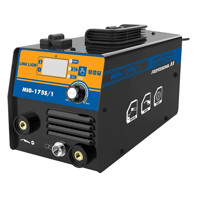 Современный цифровой безгазовый инверторный полуавтомат Link Lion MIG-175S/1 предназначен для полуавтоматической безгазовой сварки самозащитной (порошковой) проволокой 0.8-1.0 мм., и дуговой сварки штучным электродом 1.6 до 4.0 мм (без газа). Данный инверторный полуавтомат подходит для сварки тонких металлов.