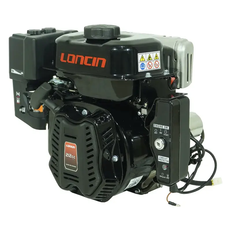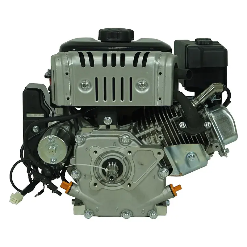 Одноцилиндровый двигатель, объем 212 куб.см, 7 л.с, горизонтальный вал 19 мм, ручной и электрический запуск.