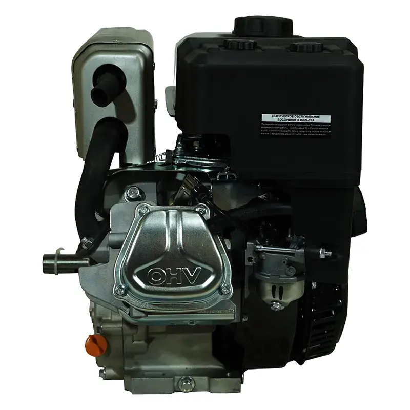 Одноцилиндровый двигатель, объем 420 куб.см, 15 л.с, горизонтальный вал 25 мм, ручной и электрический запуск.