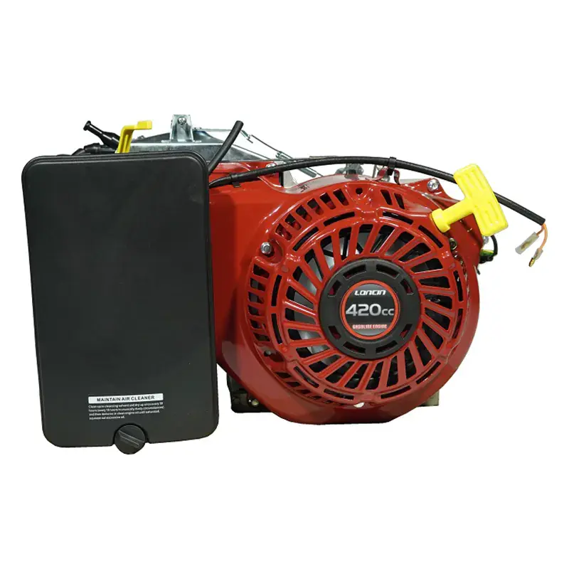 Одноцилиндровый двигатель, объем 420 куб.см, 15 л.с, горизонтальный вал 25 мм, ручной запуск.