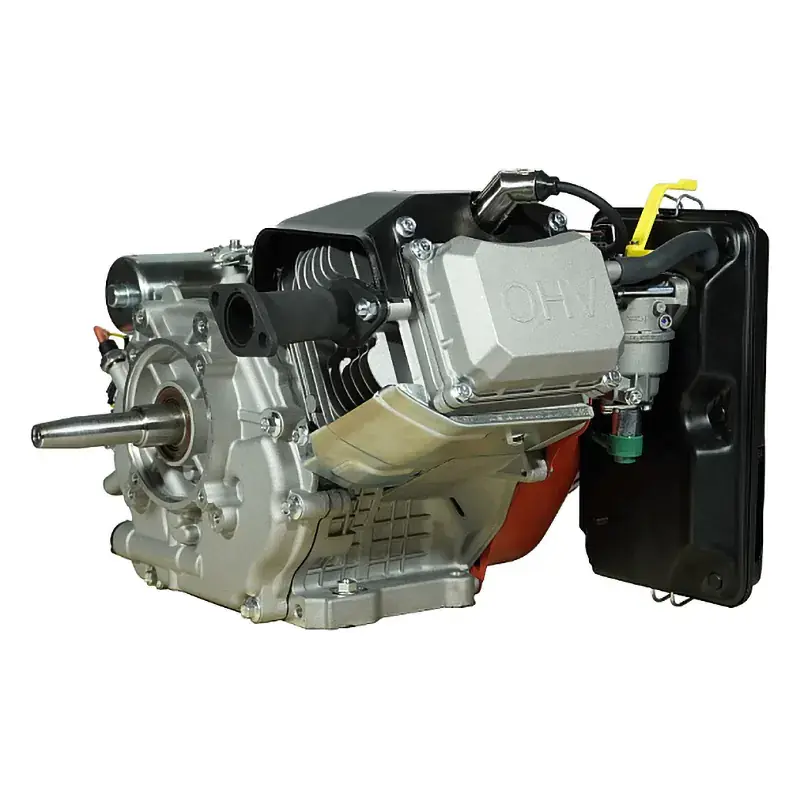 Одноцилиндровый двигатель, объем 458 куб.см, 20 л.с, горизонтальный конусный вал 25 мм, электрический запуск.