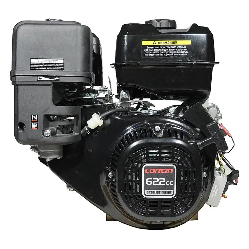 Одноцилиндровый двигатель, объем 622 куб.см, 23 л.с, горизонтальный вал 25 мм, ручной и электрический запуск, катушка освещения 20А.