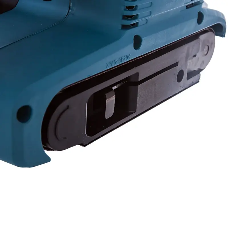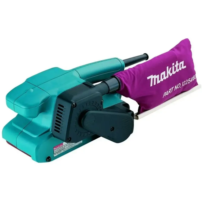Ленточная шлифмашина Makita 9910K снабжена пылесборочным мешком для поддержания чистоты на рабочем месте