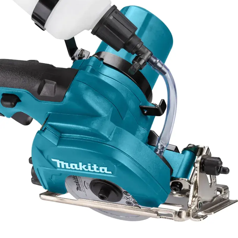 Аккумуляторная алмазная пила Makita CC301DWAE отлично справляется с распилом особо твердых материалов: камня, плитки, стекла. Для точной работы предусмотрен обдув линии реза, а благодаря подаче воды удается избежать перегрева и сколов. В качестве рабочей оснастки используется алмазный диск диаметром 85 мм.