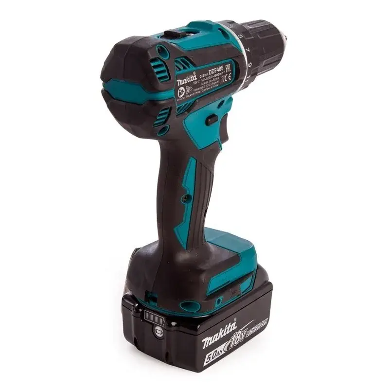 Аккумуляторная дрель-шуруповерт Makita DDF485RFE – модель с 2 режимами работы и максимальным крутящим моментом 50 Н/м. Инструмент подходит не только для использования в быту, но и в профессиональной деятельности, например, в условиях стройки.