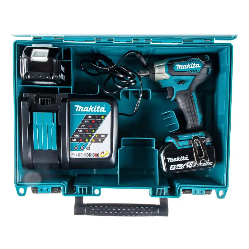 Аккумуляторный ударный гайковерт Makita DTW181RFE предназначен для завинчивания шурупов и затягивания гаек диаметром до М 16. Максимальный крутящий момент прибора может достигать 210 Нм, что обеспечивает высокую производительность работы.