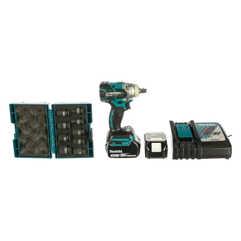 Данная модель гайковерта поставляется в кейсе с двумя аккумуляторами Li-Ion 3 Ампер каждая и ЗУ.