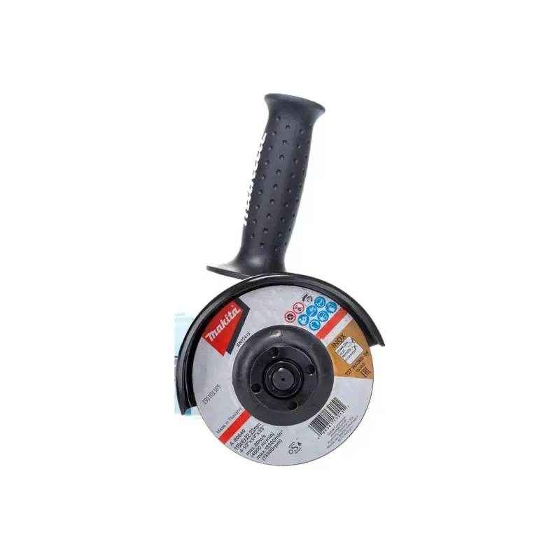 Вал угловой шлифмашины Makita GA012GM201 фиксируется для безопасной и удобной замены оснастки. Для надежного удержания и ведения инструмента предусмотрена дополнительная боковая рукоятка, которая устанавливается с любой стороны.