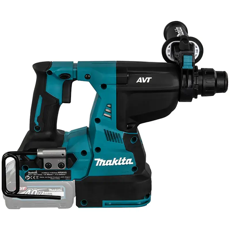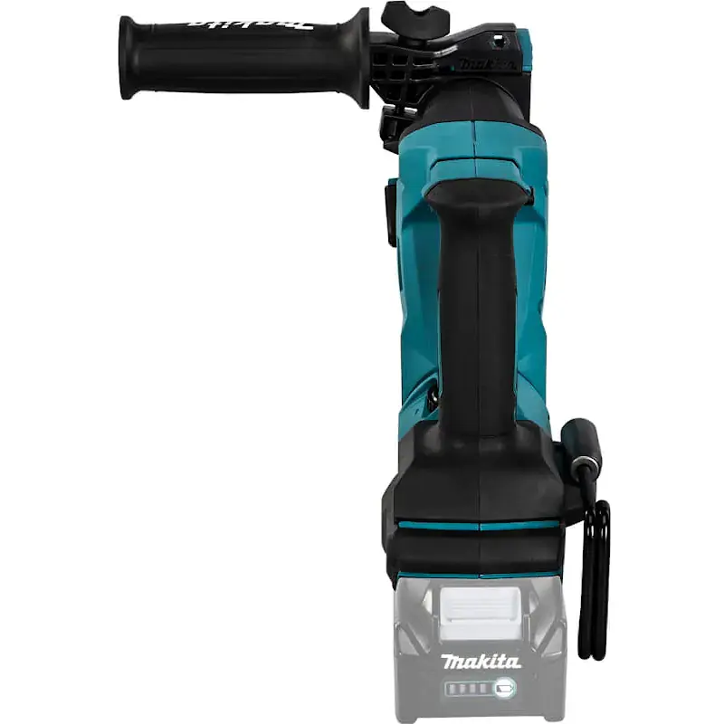 Аккумуляторный перфоратор Makita HR003GZ поддерживает три режима работы: долбление при помощи зубила, сверление с ударом силой 2,8 Дж и безударное сверление. Быстрозажимной патрон SDS-plus обеспечивает легкую смену оснастки. Инструмент оснащен боковой рукояткой, подсветкой и антивибрационной системой. Поставляется с ограничителем глубины сверления и смазкой для буров. Работает от универсального Li-Ion аккумулятора 40 В емкостью 4 Ач, совместимого с другими аккумуляторными инструментами производителя.